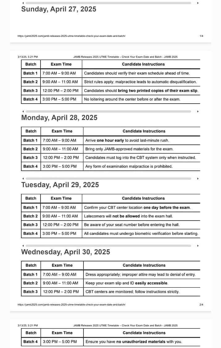 COMPLETE WAEC TIMETABLE (MAY/JUNE) 2025